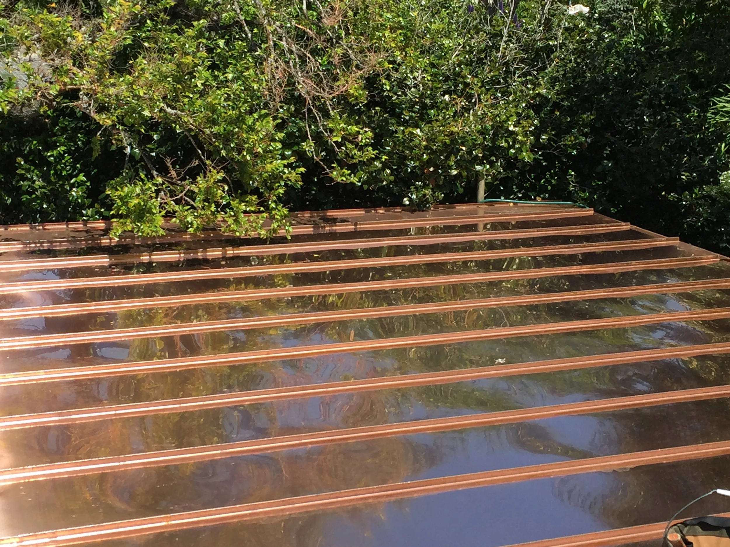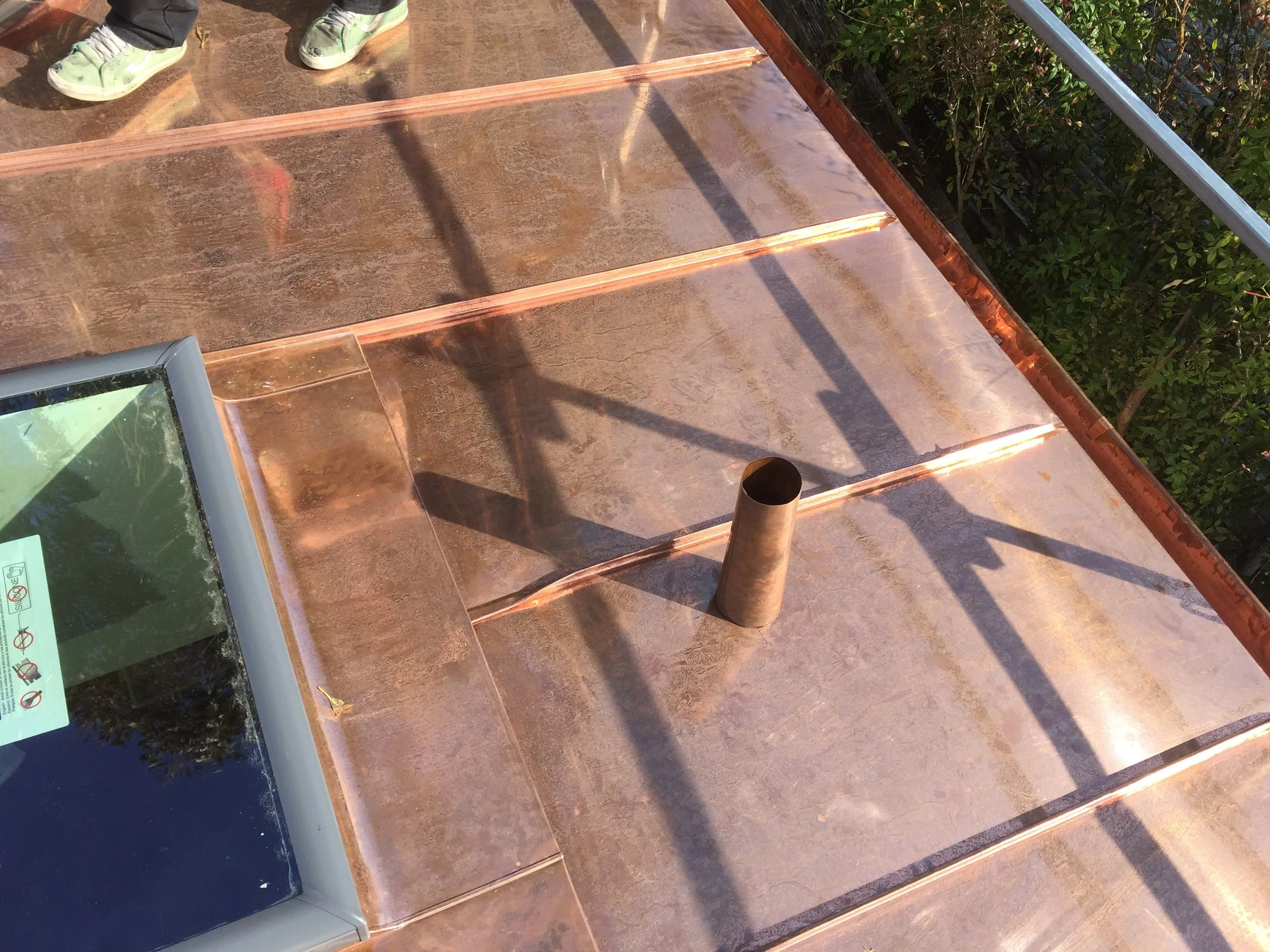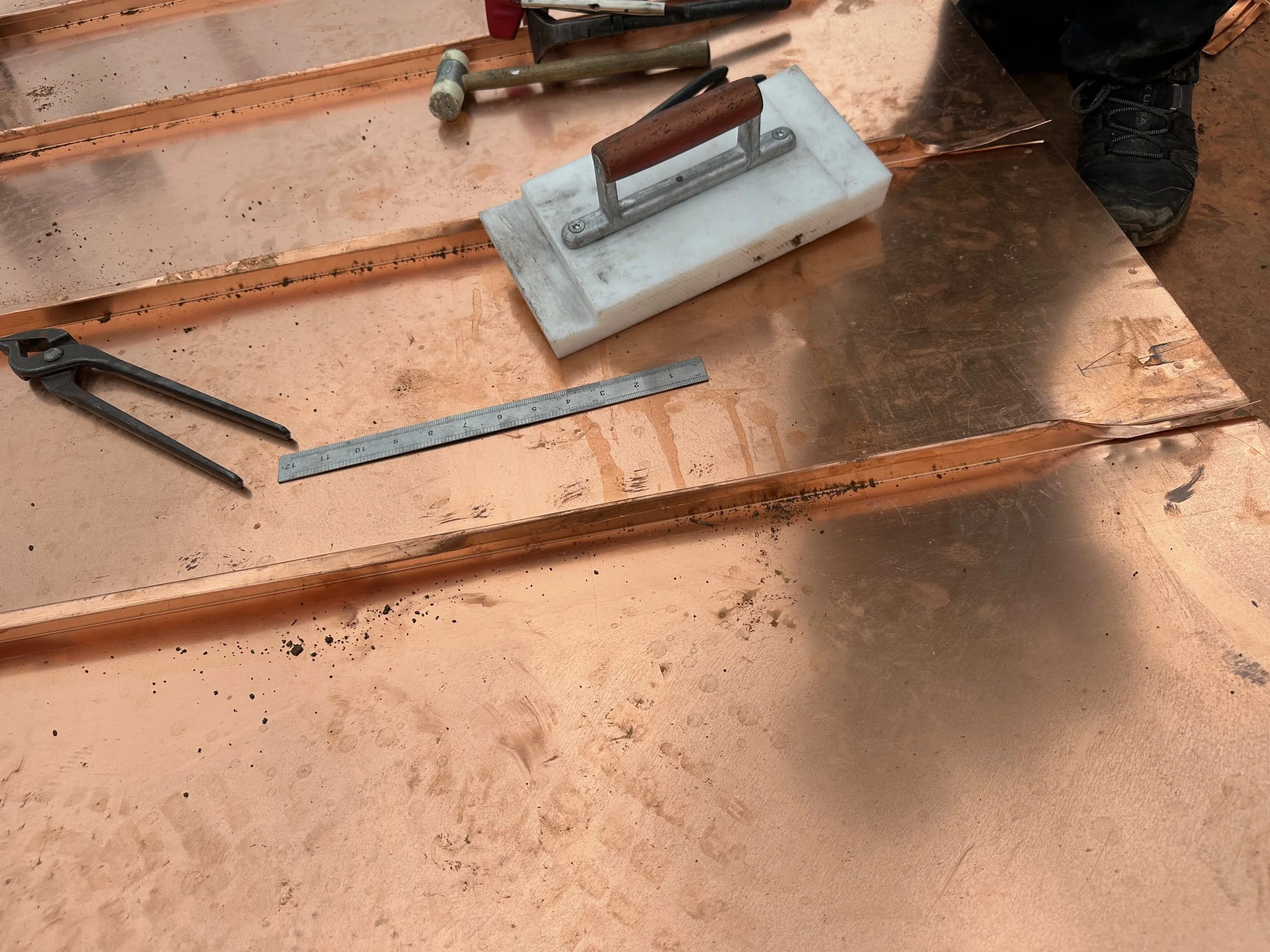 Roof installer working on copper standing seam roof in Sydney, Australia
